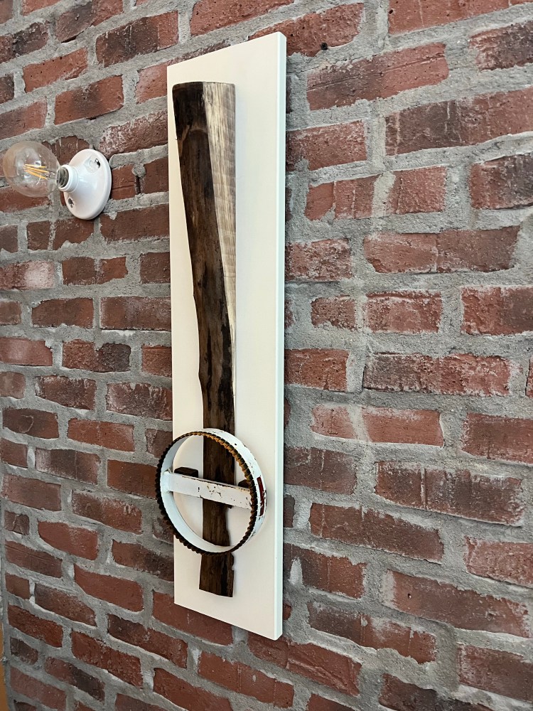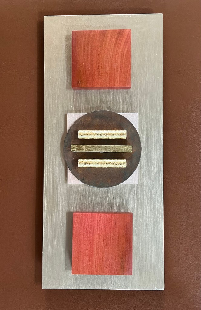 I create abstract pieces using form, shape and color to create an inner coherence to the artwork that is balanced, harmonious and visually compelling. In so doing, I ask the viewer to pay attention to objects that are typically overlooked, discarded, or cast aside: scraps from a wood workers pile, rusted pipe fittings and washers found at a salvage yard, worn saw blades.